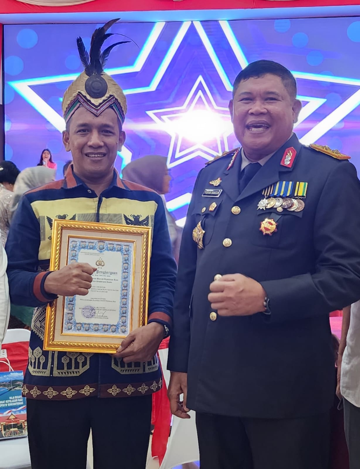 Pemberian Piagam penghargaan disampaikan langsung oleh Kapolda Kepri Irjen Pol Tabana Bangun, dalam acara syukuran HUT Bhayangkara ke 77 di aula Graha Lancang Kuning, Mapolda Kepri.