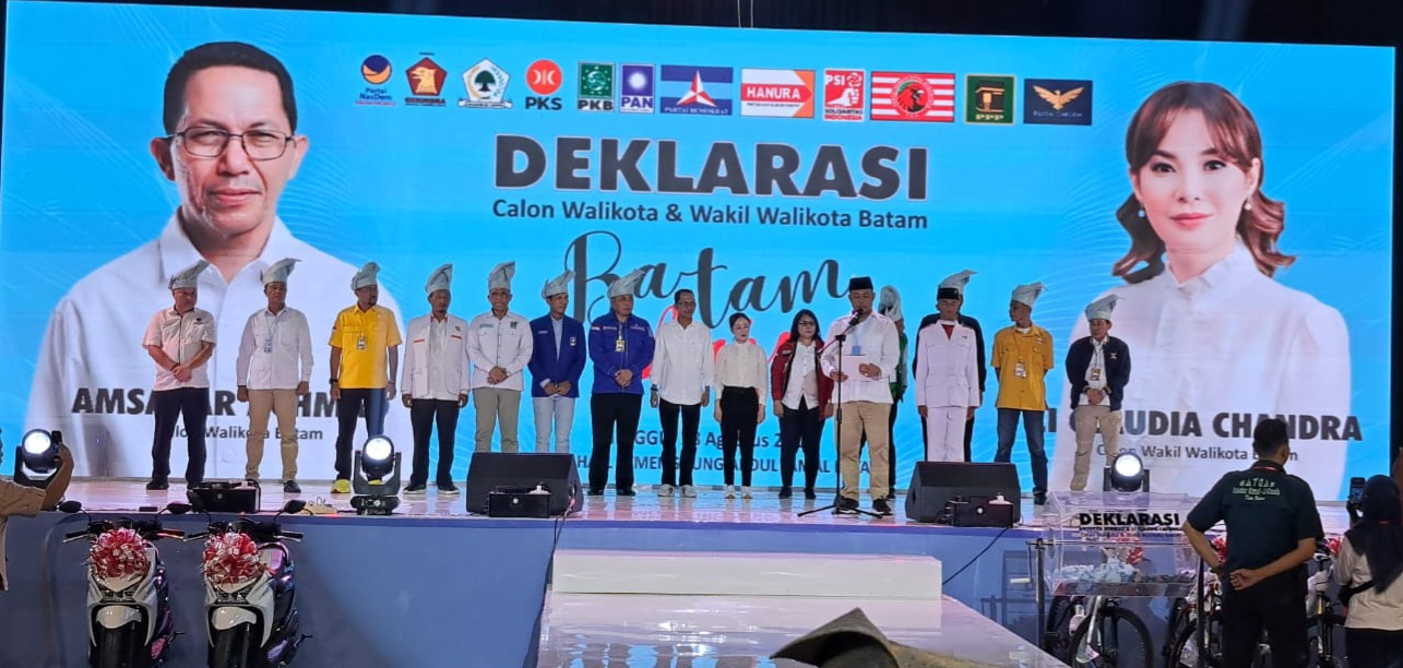 Pada deklarasi Minggu (28/8), ribuan pendukung, simpatisan dan relawan menghadiri deklarasi bakal pasangan calon Wali Kota dan Wakil Wali Kota Batam, Amsakar Achmad dan Li Claudia Chandra di Spothall, Temenggung Abdul Djamal.